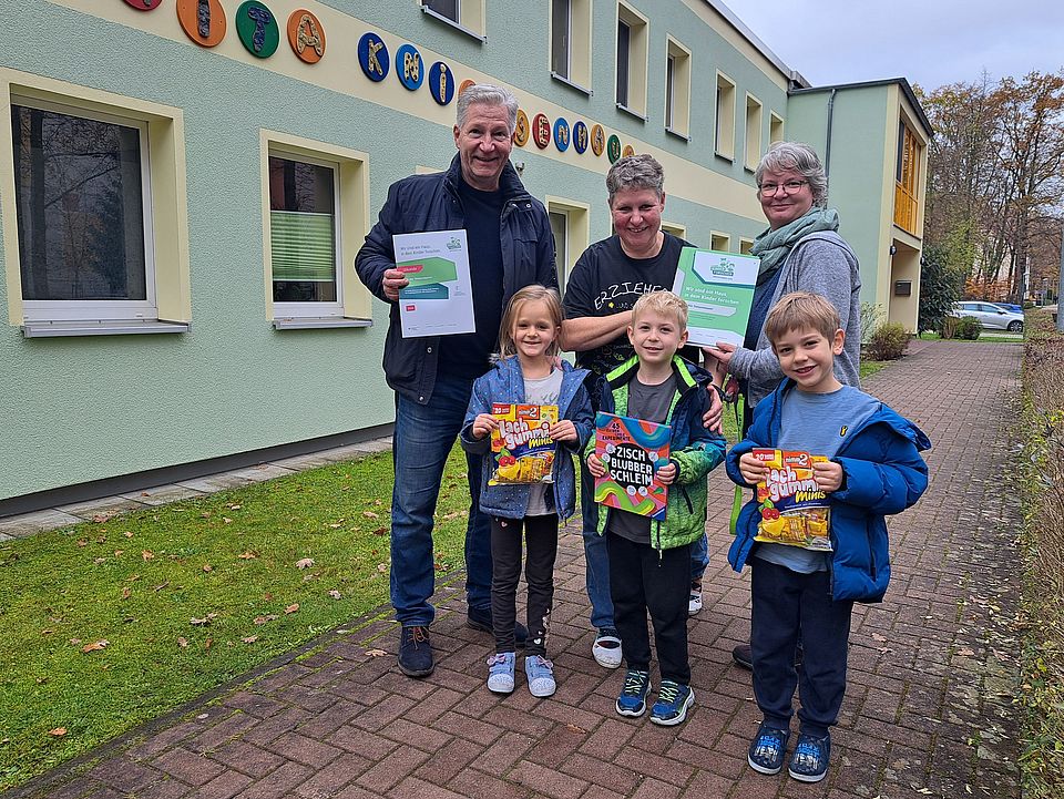 Am Freitag, 15. November 2024, erhielten Kita-Leiterin Kirstin Buch und Erzieherin Wilja Richter als Projektverantwortliche Besuch. Ralf Grundmann von der IHK-Projektgesellschaft als Projektträger in der Region hatte die Zertifizierung für die Kita “Knirpsenhausen” als Haus der kleinen Forscher im Gepäck. Er übergab eine Urkunde, eine Plakette, die künftig den Eingangsbereich der Kita im Hohenbinder Weg in Erkner zieren wird, und ein paar kleine Geschenke an Mia, Henrik und Ole stellvertretend für alle Kinder, die sich in der Kita kleinen Forschungsaufgaben widmen.